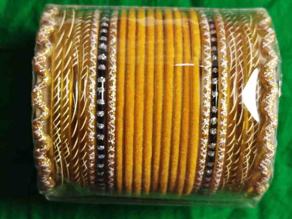 Whether worn individually for a refined accent or stacked with other bangles for a bold, layered style, the Glass Bangles Set in Golden is an essential addition to any jewelry collection, offering versatility and elegance that elevates any ensemble.