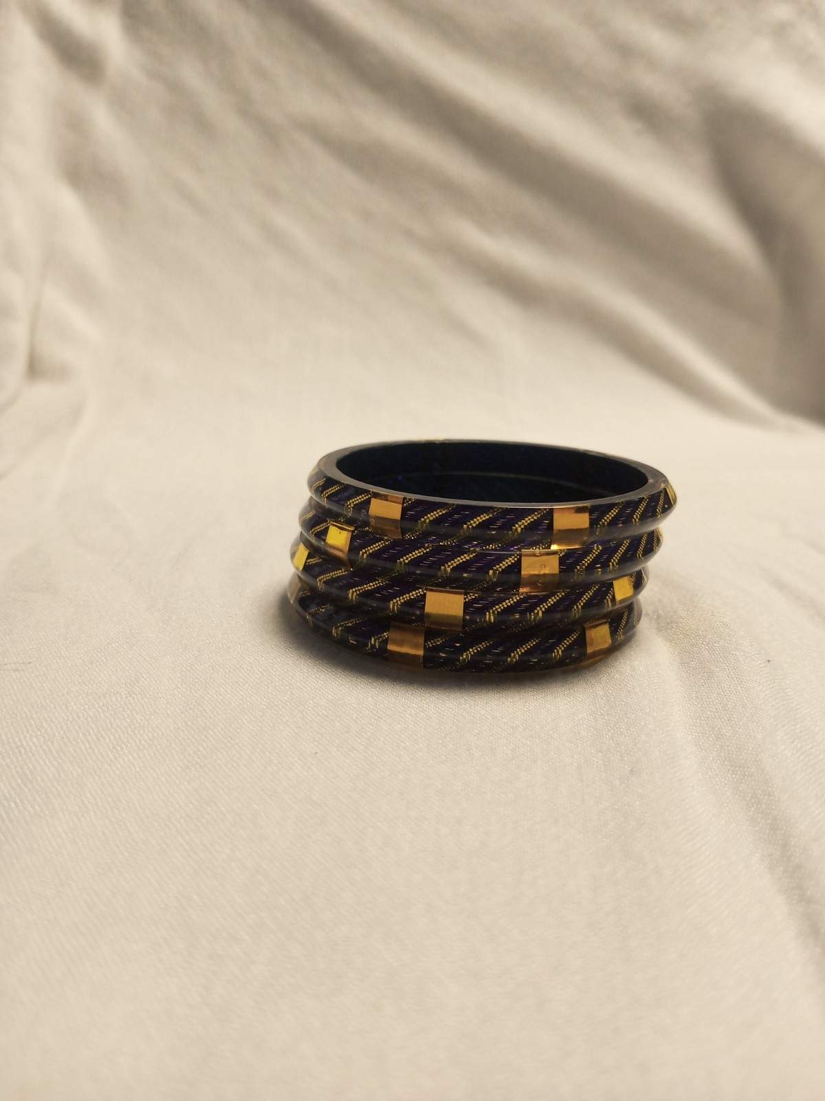 The intense deep violet base paired with gold detailing makes these bangles perfect for weddings, evening functions, festivals, parties, and semi-formal celebrations. Wear them as a coordinated set for a bold look, or pair with plain gold bangles for a balanced fusion stack that looks elegant and elevated.