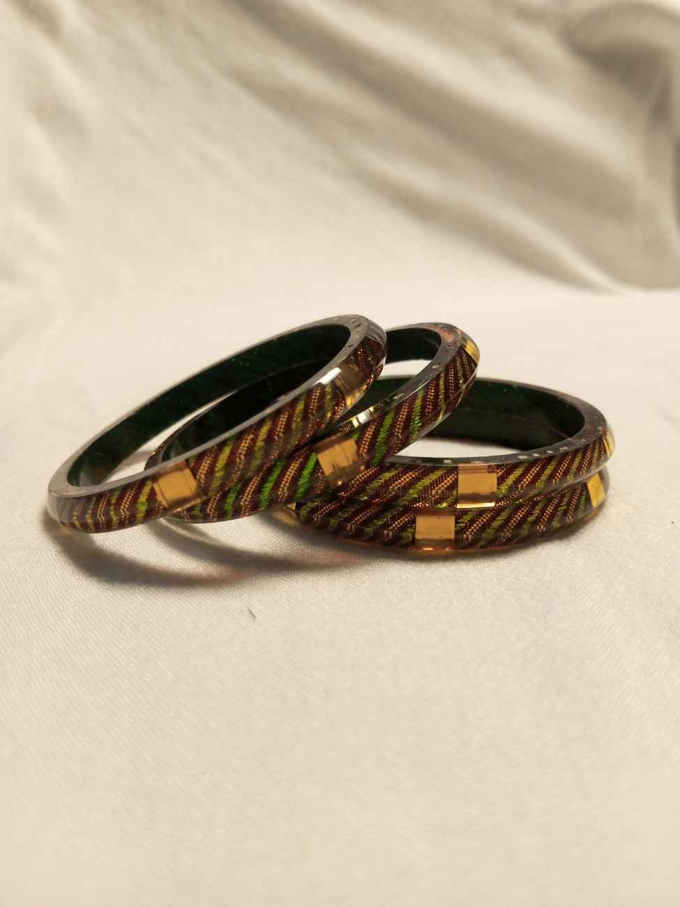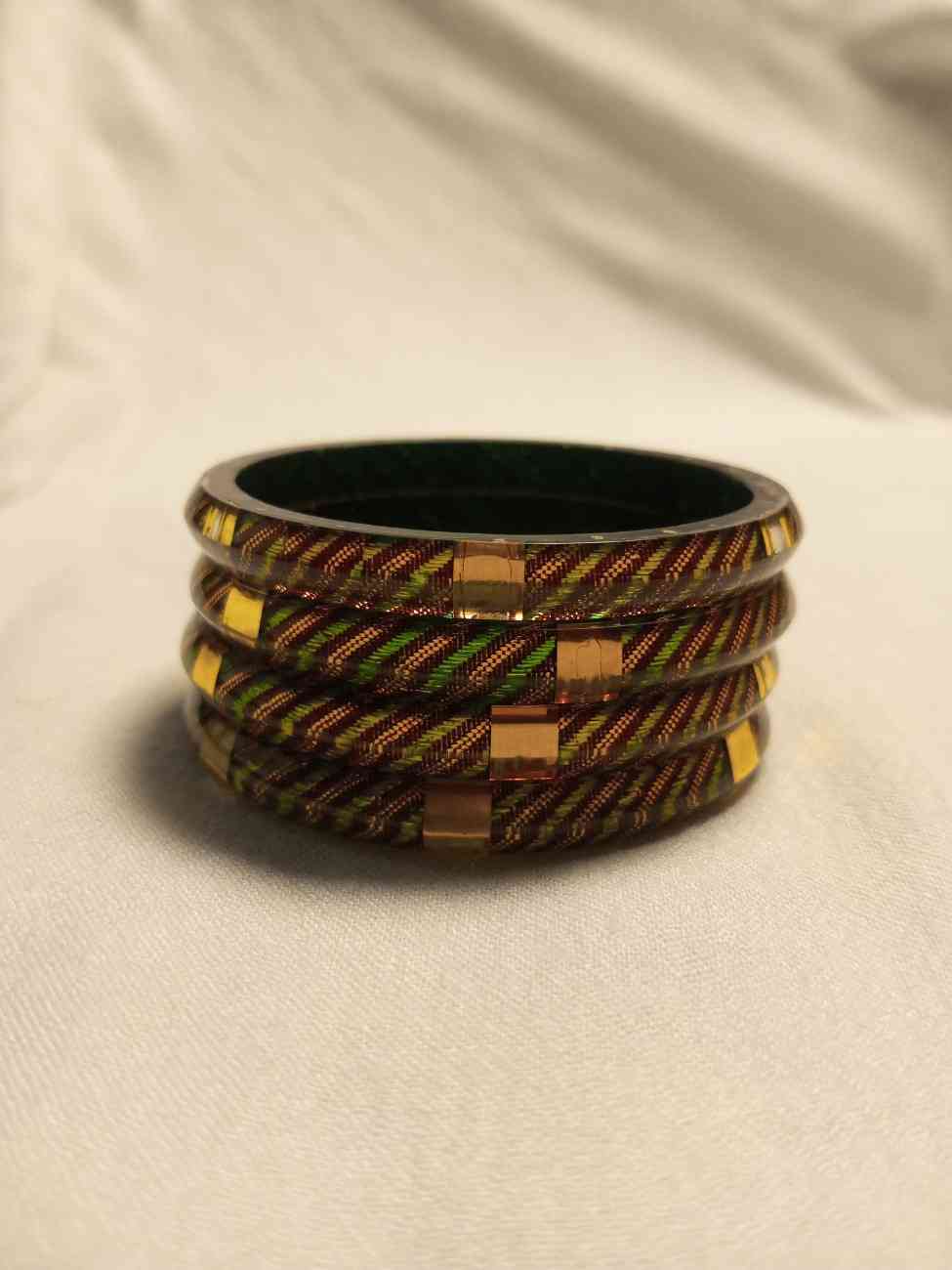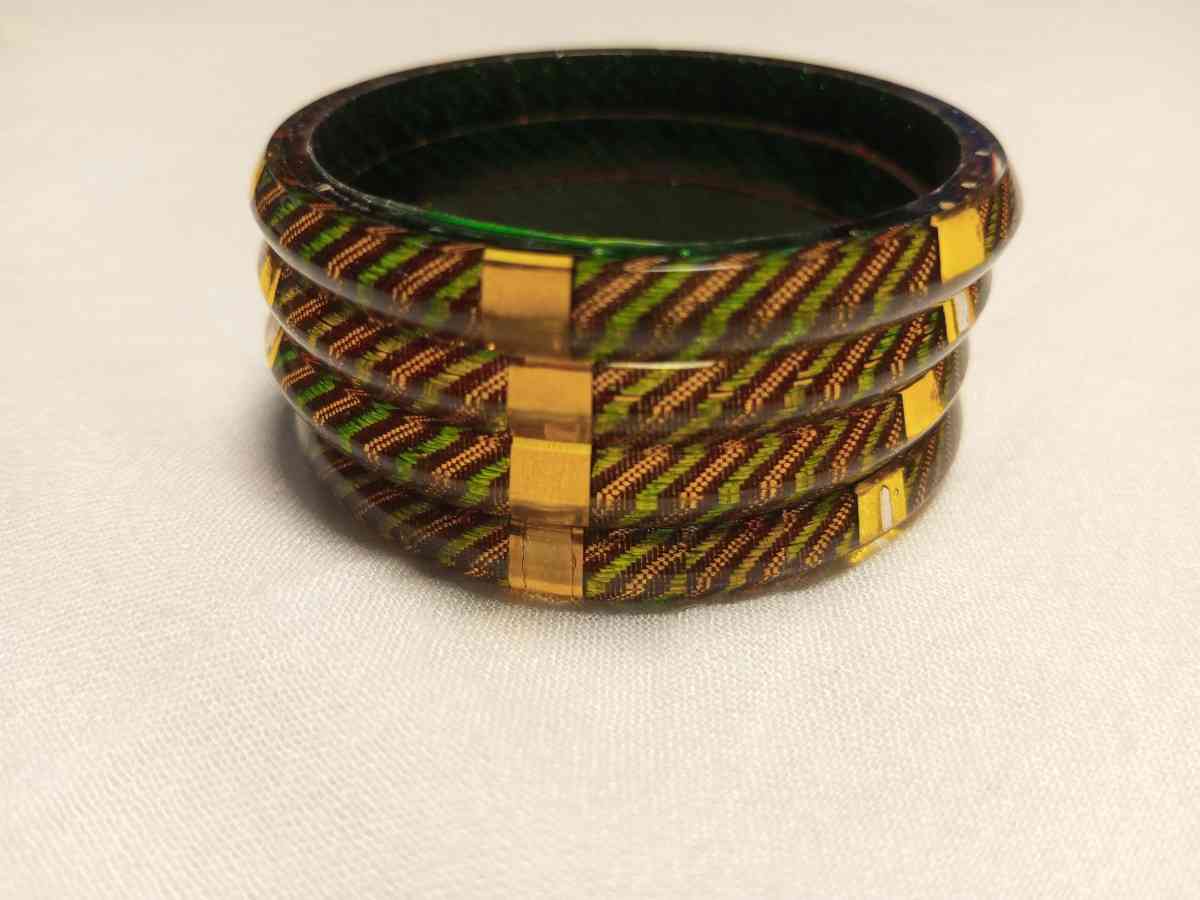 Bring a fresh, graceful touch to your bangle stack with the Golden Embellished Lines Light Green Bangles—a refined design from our Geometric & Textured collection. Crafted from durable composite plastic/resin, these bangles feature a premium dual-finish look, combining matte carved texture with polished gold-tone metallic embellishments for a rich contrast that feels modern yet traditionally inspired.