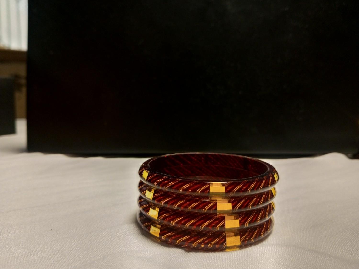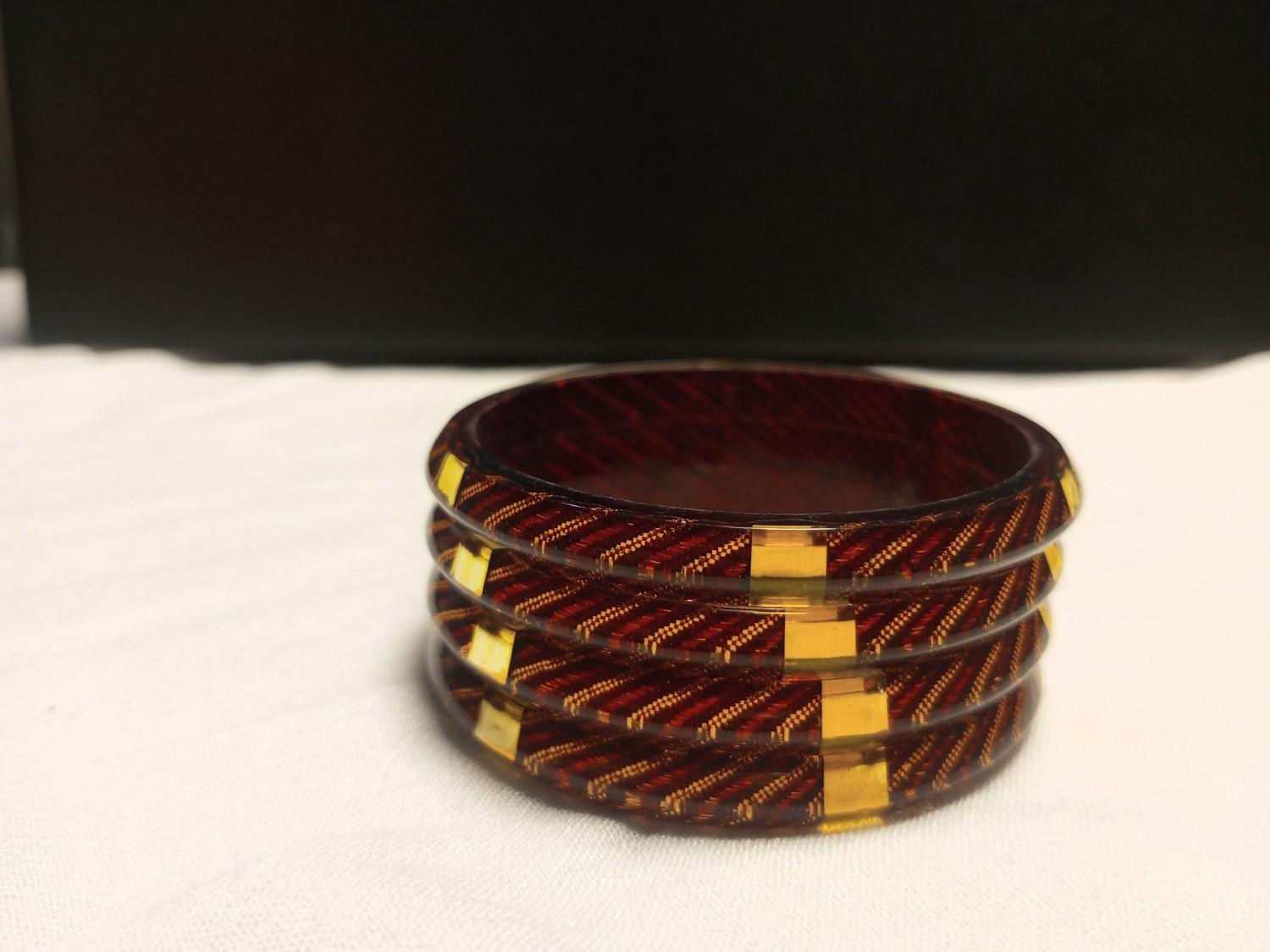 The maroon base paired with gold detailing makes these bangles especially suited to wedding functions, festivals, poojas, and evening celebrations. Wear them as a complete set for a classic ethnic feel, or pair with plain gold bangles for a balanced, contemporary fusion stack.