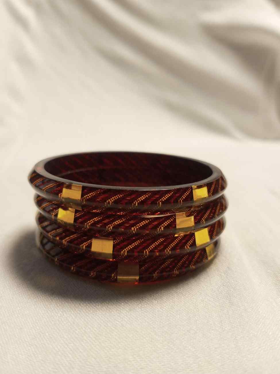 Add depth, richness, and structure to your festive stack with the Golden Embellished Lines Maroon Bangles—a standout piece from our Geometric & Textured bangle collection. Made from durable composite plastic/resin, these bangles are designed with a sophisticated dual-finish effect, blending matte/textured carved detailing with polished gold-tone metallic accents for a refined, high-contrast look.