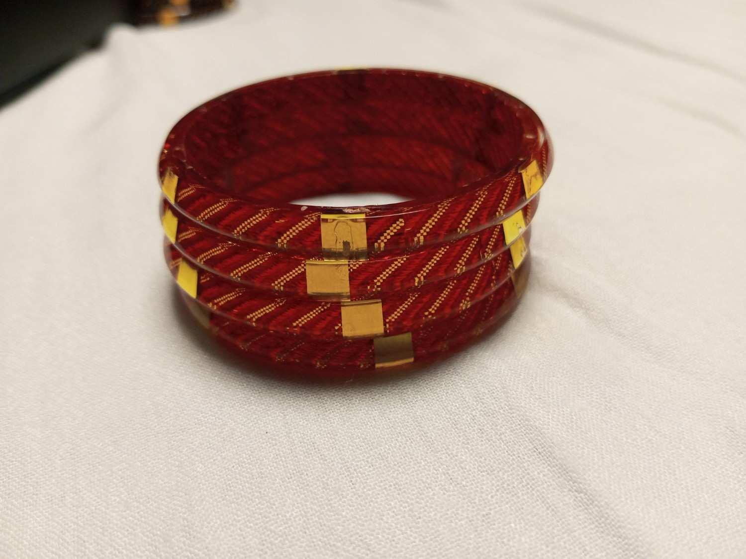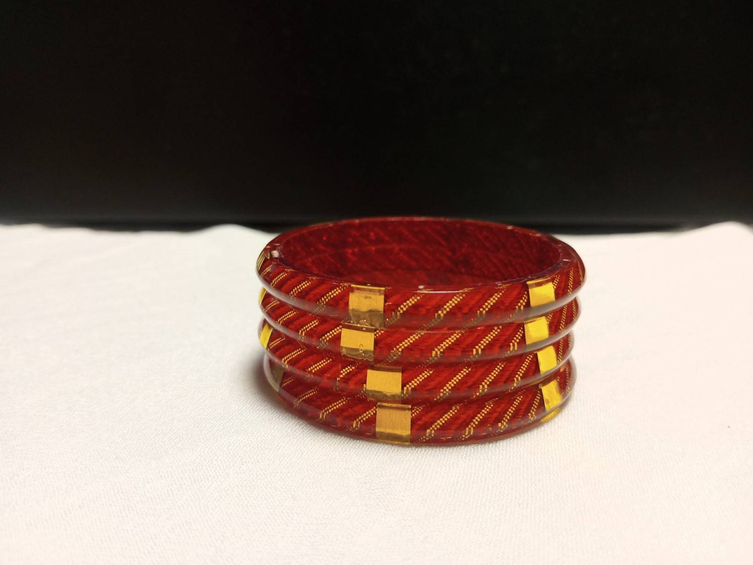 Make a bold style statement with the Golden Embellished Lines Red Bangles—a striking addition to our Geometric & Textured bangle category. Crafted from durable composite plastic/resin, these bangles are designed with a premium dual-finish look, combining matte/textured carved lines with polished gold-tone metallic detailing for rich contrast and depth.