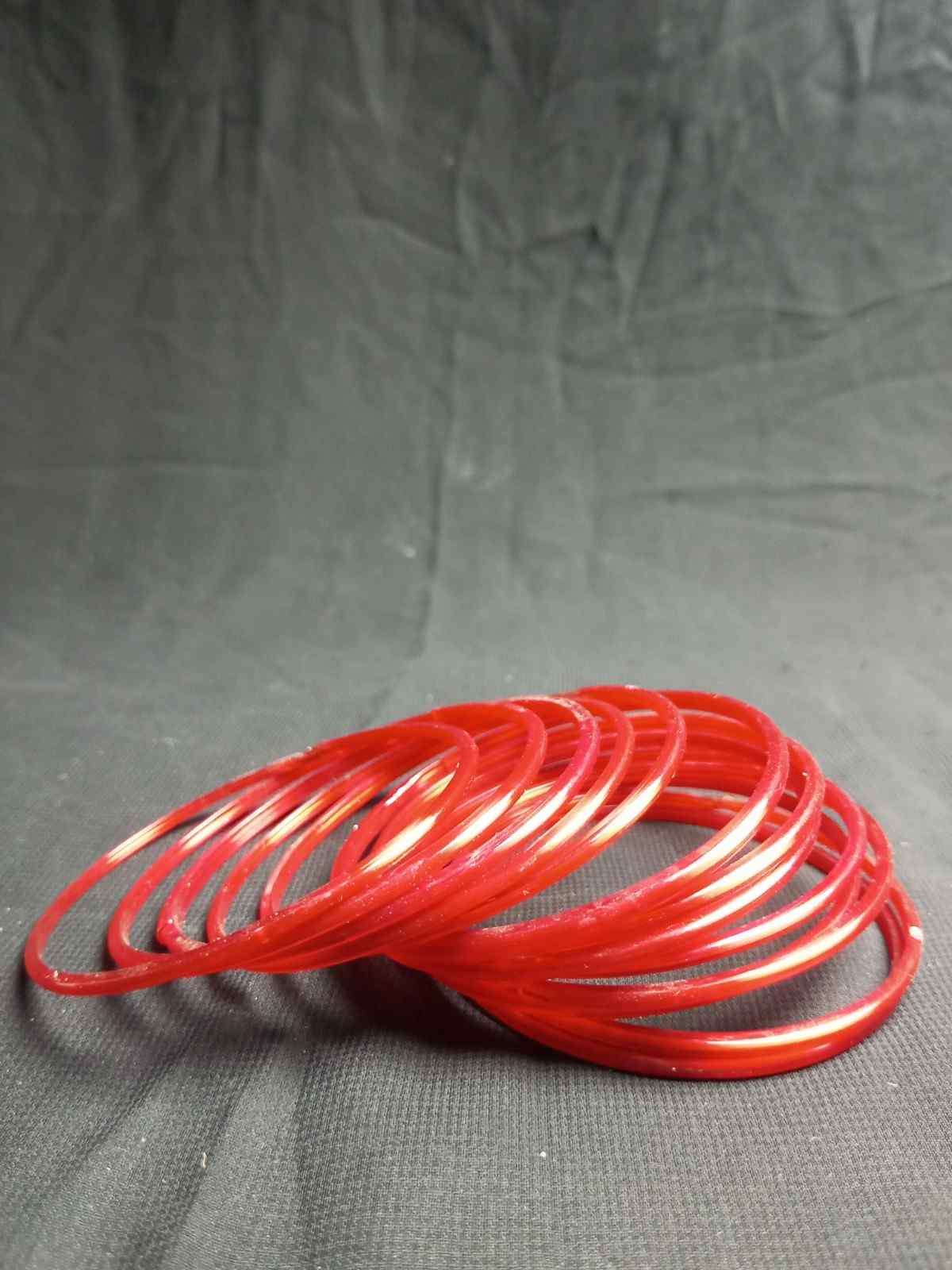 Vibrant red glass bangles with a smooth finish—perfect for stacking or wearing alone, adding a bold touch of elegance to any outfit.