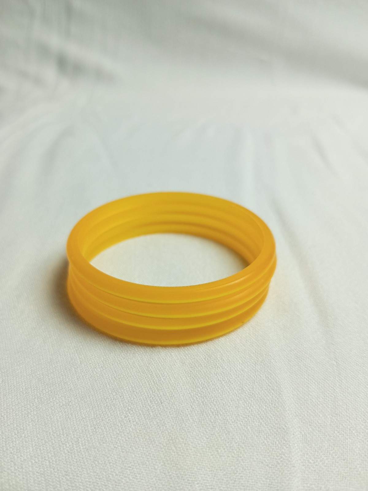 Each bangle in the set showcases a distinctive double-ridged profile, providing a contemporary and stylish look while ensuring comfort for all-day wear. The vibrant yellow color is perfect for brightening your ensemble, making these bangles versatile enough to complement both casual and more formal outfits.
